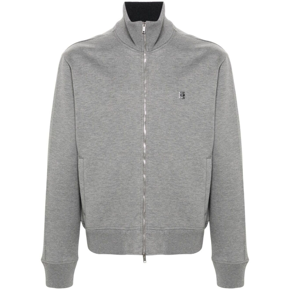 light grey cotton blend jersey texture mélange effect high neck long sleeves ribbed trim signature 4G motif two press-stud fastening side pockets front two-way zip fastening Logo zipped track suit Size and Fit - This piece fits true to size. We recommend you get your regular size. Model is 1,84m / 6ft 1in wearing size M
