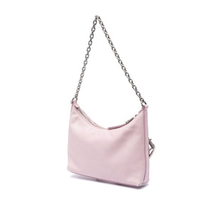 blush pink calf leather grained texture curve-edge body chain-link shoulder strap decorative buckle detailing debossed logo to the front main compartment internal logo patch full lining logo-engraved silver-tone hardware top zip fastening This piece comes complete with a protective dust bag. VoYou leather shoulder bag Size and Fit - Width 9,84 in / 25 cm