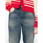 Indaco, chiusura con zip nascosta e bottone, passanti, design a cinque tasche ed effetto vissuto. Denim cotton jeans Size and Fit - This piece fits true to size. We recommend you get your regular size. Model is 1,75m / 5ft 8in wearing size 27 (WAIST CM)