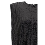 The Sequined Mini Dress by Golden Goose is a bold and sparkling piece perfect for special occasions. The sleeveless design and classic crew neck offer an elegant, understated cut, while the padded shoulders add structure and a tailored touch. The back button closure completes the design, keeping the silhouette clean and refined. The sequin design gives the dress a bright, modern effect, making it ideal for those seeking a glamorous look with a contemporary twist.