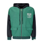 forest green front zip fastening two side flap pockets stripe trim slouchy drawstring hood Organic cotton reversbile hoodie Size and Fit - This piece fits true to size. We recommend you get your regular size. Model is 1,84m / 6ft 1in wearing size M