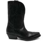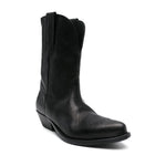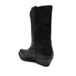 black calf leather smooth grain decorative stitching double pull-tab at the opening low stacked heel pointed toe branded leather insole rubber sole Wish Star leather boots Size and Fit - Heel 1,4 in / 3,5 cm