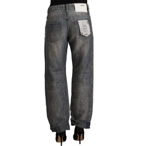 Acht Gray Washed Ramie Straight Denim Folded Hem Jeans