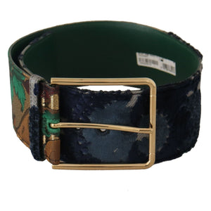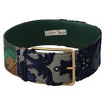 Dolce & Gabbana Green Jaquard Embroid Leather Gold Metal Belt