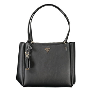 Unleash the diva within with the Guess Jeans Talent Bag, an epitome of urban chic and practical elegance. Sporting twin shoulder handles for versatility, this sleek black tote boasts two external pockets matched with two zipped compartments, ensuring your essentials stay organized in style. The central snap-closure compartment keeps your treasures secure, while protective feet add durability to this fashion-forward accessory. Adorned with the iconic Guess logo, it’s a statement piece that refuses to go unnoticed.