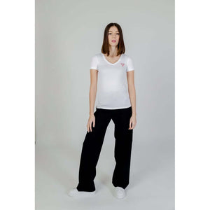 The Guess VN MINI TRIANGLE W2YI45 J1314 women’s short-sleeved t-shirt is a wardrobe essential with a modern and feminine design. Crafted from a soft blend of 95% cotton and 5% elastane, it offers a snug and comfortable fit that enhances the silhouette. Featuring short sleeves and a V-neckline, this t-shirt combines casual elegance with everyday practicality. The iconic mini Guess Triangle logo embroidered on the chest adds a distinctive touch of authenticity and style. Perfect to pair with jeans, skirts, or trousers, this t-shirt is a must-have for every woman’s closet.