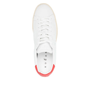 white front lace-up fastening flat rubber sole contrasting heel counter signature perforated H logo H672 leather sneakers Size and Fit - Heel 1,2 in / 3 cm; Platform 1 in / 2,5 cm