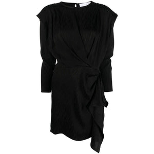 long-sleeved draped jacquard dress from IRO featuring black, full jacquard, asymmetric design, gathered detailing, draped detailing, crew neck, rear button fastening, long sleeves and asymmetric hem. Hiari short viscose dress Size and Fit - This piece fits true to size. We recommend you get your regular size. Model is 1,75m / 5ft 8in wearing size 36 (FR)