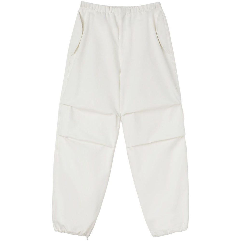 tapered cotton trousers from JIL SANDER featuring ivory white, cotton, gathered detailing, elasticated waistband, tapered leg, two press-stud fastening side pockets, two rear flap pockets and drawstring cuffs. Tapered cotton trousers Size and Fit - This piece fits true to size. We recommend you get your regular size. Model is 1,84m / 6ft 1in wearing size 48 (IT)