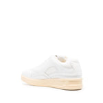 panelled low-top leather sneakers from JIL SANDER featuring white, calf leather, panelled design, debossed logo to the side, perforated detailing, round toe, front lace-up fastening, branded leather insole and flat rubber sole. Leather sneakers Size and Fit - Heel 1,4 in / 3,5 cm; Platform 1 in / 2,5 cm