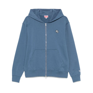 cerulean blue front zip fastening classic hood two front pouch pockets embroidered logo at the sleeve Pop Crest cotton hoodie Size and Fit - This piece fits true to size. We recommend you get your regular size. Model is 1,84m / 6ft 1in wearing size M