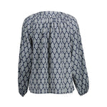 long sleeve blouse, round neckline, lacing with laces, central motif, cuffs with elastic and button, contrasting details, logo