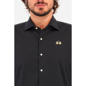 La Martina cotton shirt with chest embroidery, centre bottom detail, slim fit.