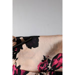 Laneus Pink Floral Silk Long Sleeves V-neck Ruched Mini Dress