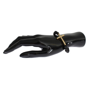 Nialaya Lava Stone Gold Clear CZ Cross 925 Silver Bracelet