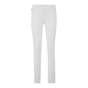 Unleash your chic with Love Moschino’s white women’s jeans, embodying Italian flair in every thread. Tailored to perfection, these jeans merge cotton comfort with a hint of elastane, ensuring a flawless fit. Designed in the heart of Italy, they feature classic five-pocket detailing, accented by a sleek button and zip closure. Bold yet effortlessly trendy, make a statement in these pristine Love Moschino jeans.