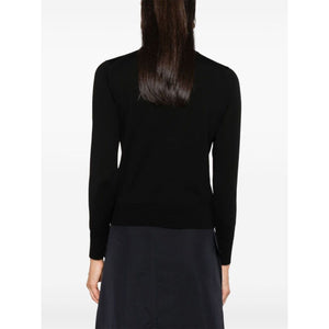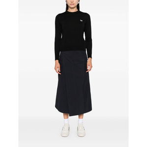 black wool knitted construction fine knit seam detailing crew neck long sleeves ribbed cuffs and hem embroidered Baby Fox patch at the chest straight hem. Baby Fox wool jumper Size and Fit - This piece fits true to size. We recommend you get your regular size. Model is 1,75m / 5ft 8in wearing size S