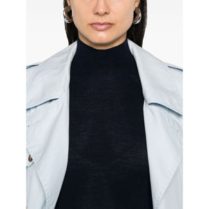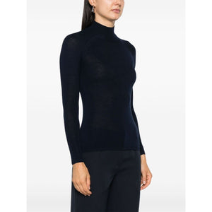navy blue merino wool blend fine knit brushed effect roll neck long raglan sleeves straight hem Wool and silk blend high-neck sweater Size and Fit - This piece fits true to size. We recommend you get your regular size. Model is 1,75m / 5ft 8in wearing size 1 (NUM)