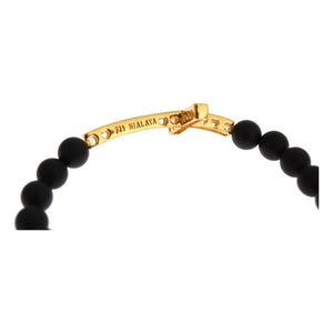 Nialaya Matte Onyx Stone Gold CZ Cross 925 Silver Bracelet