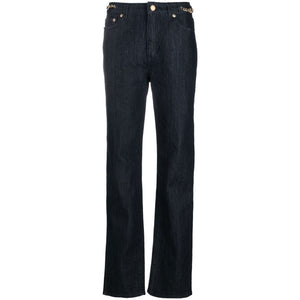 straight-leg chain-detail jeans from MICHAEL MICHAEL KORS featuring indigo blue, cotton blend, denim, chain-link detailing, logo plaque, classic five pockets, concealed fly and button fastening, belt loops, straight leg and straight hem. Cropped denim jeans Size and Fit - This piece fits true to size. We recommend you get your regular size. Model is 1,75m / 5ft 8in wearing size 4 (US)