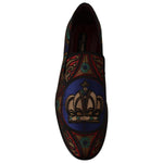 Dolce & Gabbana Multicolor Jacquard Crown Slippers Loafers Shoes