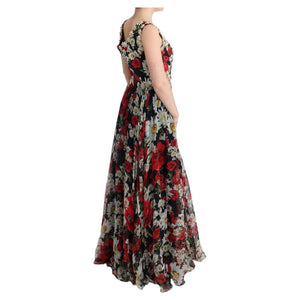 Dolce & Gabbana Multicolor Silk Floral Crystal Long Maxi Dress