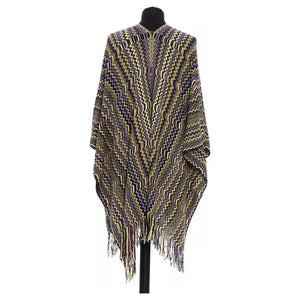 Drape yourself in luxury with this eclectic Missoni fringe poncho, where chic meets playfulness. The Italian fashion house’s signature geometric fantasy comes to life in a kaleidoscope of colors, creating a statement piece that’s both eye-catching and elegant. Designed to turn heads, this poncho is the perfect blend of sophistication and whimsy, an ideal choice for the bold fashionista.