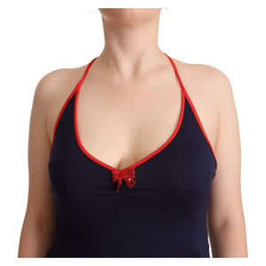 Roccobarocco Navy Blue Sleeveless Halter Sheath Midi Dress