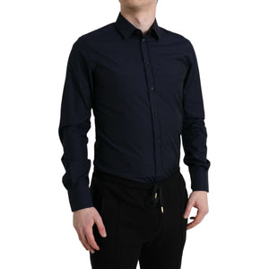 Dolce & Gabbana Navy Blue Slim Fit Formal GOLD Dress Shirt