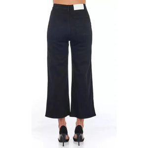 Elevate your wardrobe staples with Frankie Morello’s striking cropped trousers, a true emblem of chic versatility. These high-waisted pants boast a sleek multipocket design, making them as functional as they are fashionable. Crafted with a blend of cotton and elastane for a comfortable stretch, they’re finished with a classic front zip and button closure. Perfect for making a bold statement while keeping things effortlessly trendy.