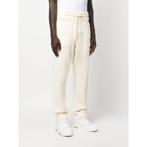Diag-stripe knitted track pants from OFF-WHITE featuring light beige, cotton, knitted construction, signature Diag-stripe print, ribbed drawstring waistband, two side inset pockets, rear patch pocket, straight leg and ribbed ankles. Cotton sweatpants Size and Fit - This piece fits true to size. We recommend you get your regular size. Model is 1,84m / 6ft 1in wearing size M