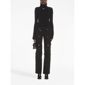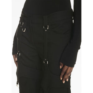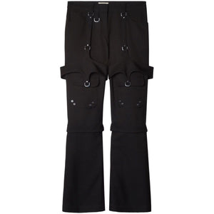 buckle-detail cargo pants from OFF-WHITE featuring black, virgin wool blend, flared design, wide leg, decorative buckle detailing, belt loops, concealed front fastening, multiple cargo pockets and detachable legs. Wool cargo trousers Size and Fit - This piece fits true to size. We recommend you get your regular size. Model is 1,75m / 5ft 8in wearing size 40 (IT)