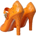 Dolce & Gabbana Orange CINDERELLA Floral Crystal Pumps Shoes