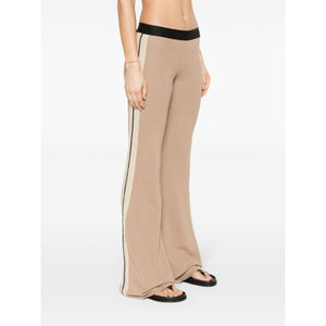 beige/black cotton knitted construction crochet knit elasticated logo waistband side stripe detailing flared design Logo tape knitted trousers Size and Fit - This piece fits true to size. We recommend you get your regular size. Model is 1,75m / 5ft 8in wearing size S