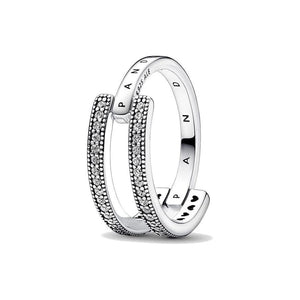 PANDORA JEWELS Mod. SIGNATURE LOGO & PAVE DOUBLE BAND - RING - Size 54