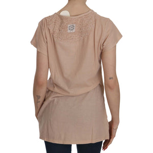 PINK MEMORIES Pink Cream Lace Short Sleeve Shirt Top Cotton Blouse