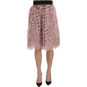 Dolce & Gabbana Pink Gold Fringe Metallic Pencil A-line Skirt
