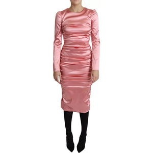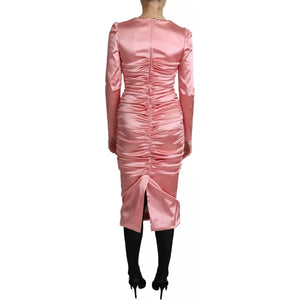 Dolce & Gabbana Pink Long Sleeves Bodycon Sheath Midi Dress