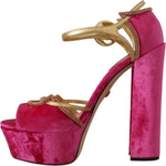 Dolce & Gabbana Pink Velvet Crystal Ankle Strap Sandals Shoes