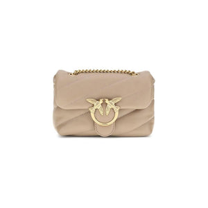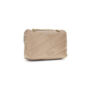 Calfskin Love Baby Shoulder Bag by Pinko, front closure with magnetic button, iconic gold-plated Love Birds logo embossed on the front, quilted and padded design, double internal compartment, sliding chain shoulder strap, iconic brand monogram embroidered tone-on-tone on the back.