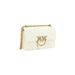 The Mini Love leather Shoulder Bag by Pinko is a perfect mix of elegance and functionality. The front closure with magnetic flap ensures safety and practicality, while the iconic gold-plated Love Birds logo embossed on the front adds a touch of distinctive luxury. The quilted and padded design is not only refined, but also gives a feeling of softness and comfort. The double internal compartment offers enough space to keep everything in order, while the sliding chain shoulder strap allows you to adjust it to your preferred height, making it perfect for any occasion. The internal slip pocket and the tone-on-tone embroidered brand monogram on the back add exclusive details that make this bag a must-have.