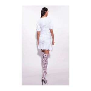 Pinko cotton dress with pleats and balloon sleeves, front belly opening, back zipper closure