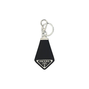 Prada’s Saffiano leather Keychain is a compact and refined accessory, embellished with a pendant featuring the brand’s iconic logoed triangle. Featuring a practical silver-plated hook with snap hook, it combines elegance and functionality, perfect for adding a distinctive touch to keys or bags.