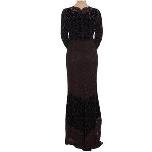 Dolce & Gabbana Purple Floral Lace Ricamo Maxi Dress