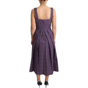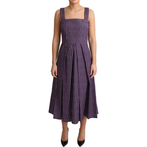 Dolce & Gabbana Purple Striped Cotton A-Line Stretch Dress