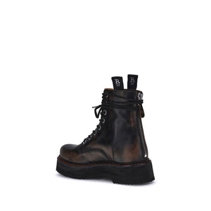 The R13 lace-up Ankle Boots stand out for their platform sole and worn effect that gives them a bold and authentic look. Featuring a zip on the back and branded pullers on the front and heel, they combine practicality and style in a contemporary and decisive design.