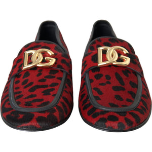 Dolce & Gabbana Red Black Leopard DG Loafers Formal Men Shoes
