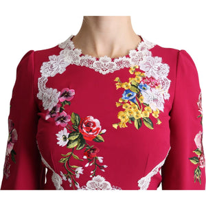 Dolce & Gabbana Red Floral Embroidered Sheath Midi Dress