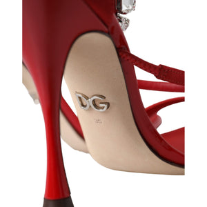 Dolce & Gabbana Red Keira Satin Crystals Sandals Heels Shoes