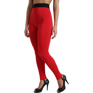 Dolce & Gabbana Red Nylon DG Logo Slim Leggings Pants